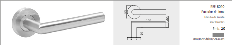STAINLESS HANDLES FOR DOORS AND ROSETTE FOR CYLINDER